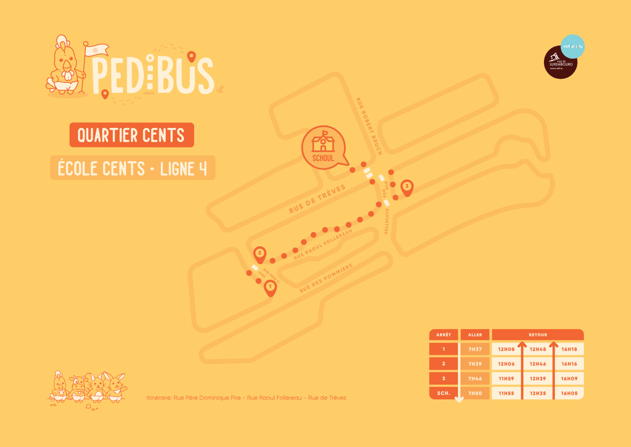 Route: Rue Père Dominique Pire, Rue Raoul Follereau, Rue de Trèves