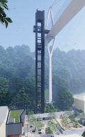 The elevator shaft is architecturally and structurally independent from the bridge itself. The elevator is situated 4 metres from the bridge. Both are distinctive in their own right, while also forming a coherent whole.