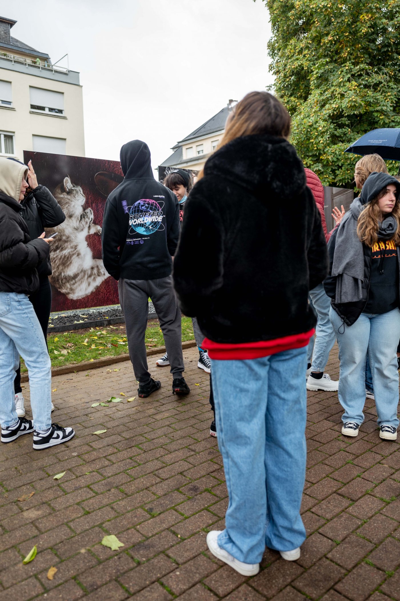 The exhibition was created by students from 3CE (Plastic Arts section) and 4C-Développement classes as part of the Development Project, supported by the European Commission Representation in Luxembourg and the UNESCO Associated Schools Network. Under the guidance of their teachers Valérie Sassel and Christophe Wilwert, the students took inspiration from the photographic works of Eilo Elvinger. The students were asked to explore the injustices and inequalities they see in their daily lives in connection with the 17 UN Sustainable Development Goals: using their cell phones, the budding young artists captured moments from our daily lives relating to themes such as world hunger, war, the ecological transition and education.